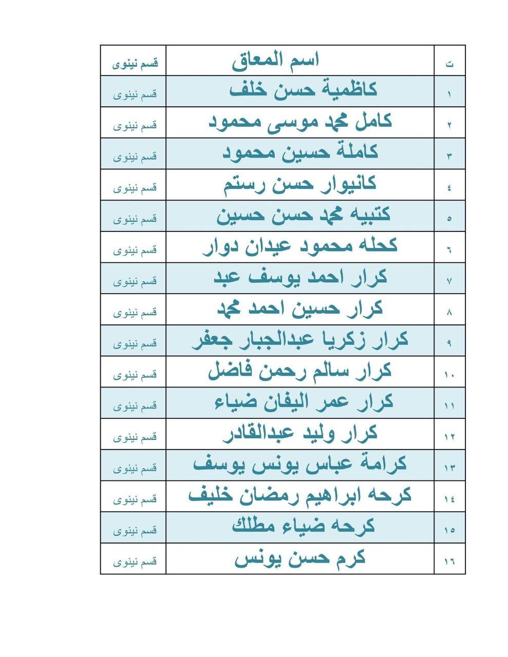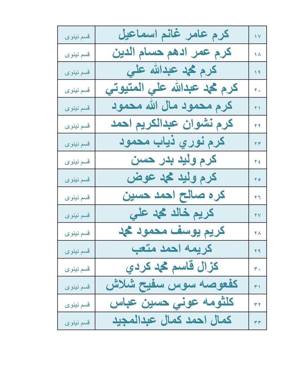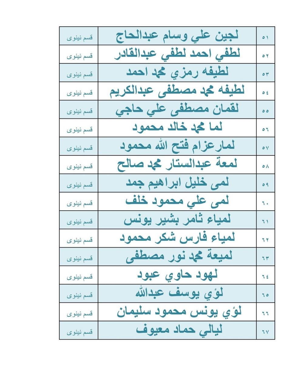 اسماء المعين المتفرغ يرجى المراجعة يوم الاحد 2026/2/1